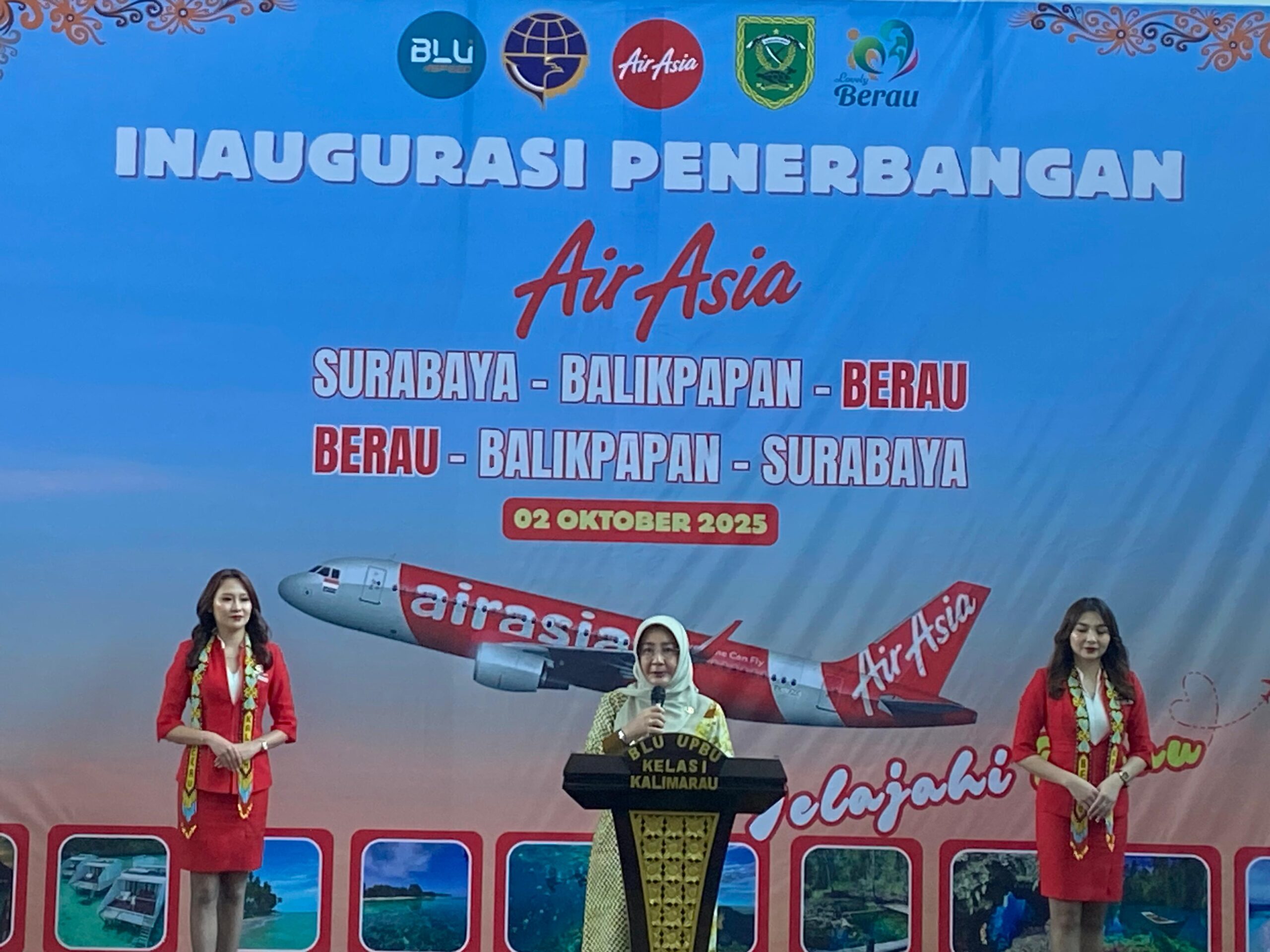 BERAU – Kabupaten Berau kini memiliki tambahan akses transportasi udara setelah maskapai AirAsia resmi membuka rute penerbangan Surabaya–Berau dan sebaliknya. Momentum bersejarah itu ditandai dengan inagurasi pendaratan perdana di Bandar Udara Kalimarau pada Kamis (2/10/2025).