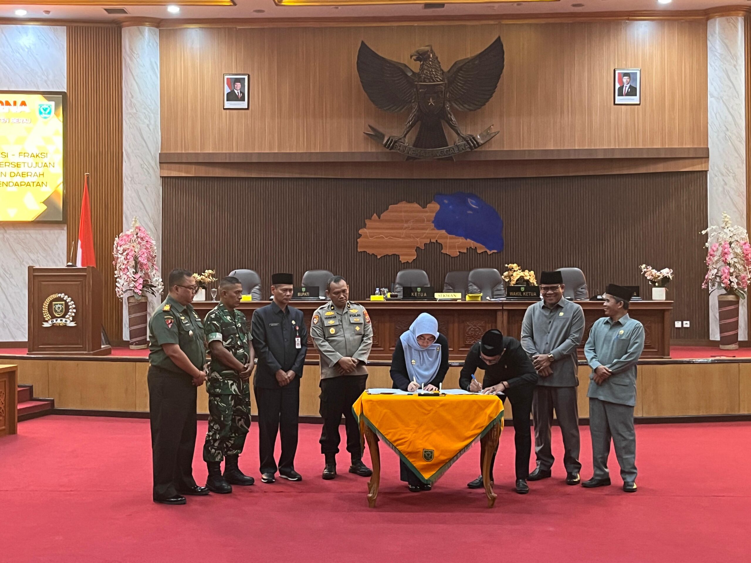 BERAU – DPRD Kabupaten Berau resmi menetapkan Rancangan Peraturan Daerah (Raperda) tentang Perubahan Anggaran Pendapatan dan Belanja Daerah (APBD) Tahun Anggaran 2025 menjadi Peraturan Daerah (Perda). Keputusan ini diambil dalam rapat paripurna yang dihadiri Bupati Berau Sri Juniarsih Mas, jajaran Forkopimda, Organisasi Perangkat Daerah (OPD), serta 22 anggota DPRD.