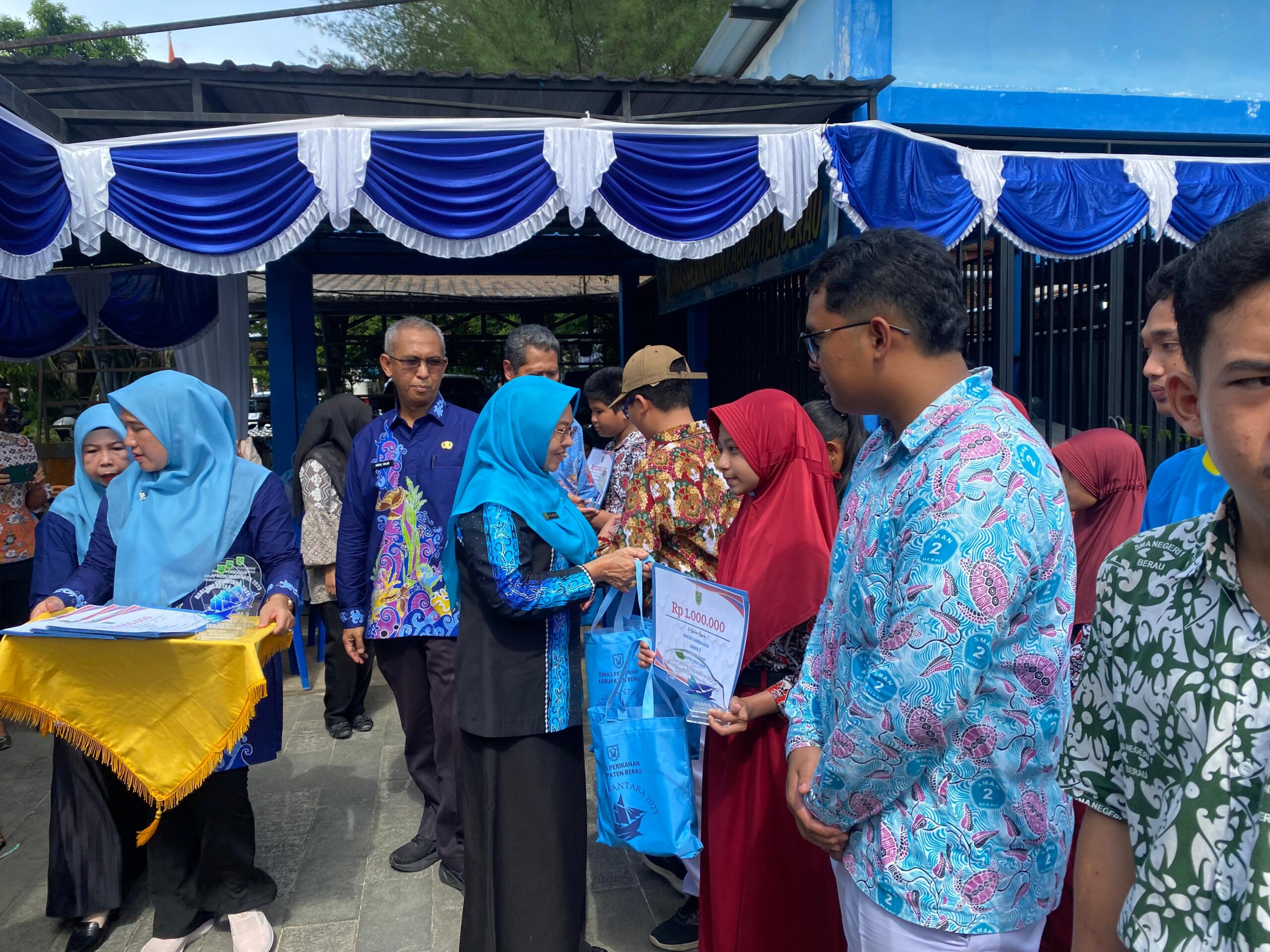 BERAU – Peringatan Hari Nusantara di Kabupaten Berau ditutup dengan suasana semarak melalui penyerahan hadiah berbagai lomba dan apresiasi bagi nelayan, pembudidaya ikan, serta pelaku pengolahan perikanan unggulan. Acara yang berlangsung pada Kamis (11/12/25) di Halaman Kantor Dinas Perikanan ini turut dihadiri jajaran Forkopimda, perwakilan OPD, pelajar, hingga pelaku usaha sektor kelautan dan perikanan.