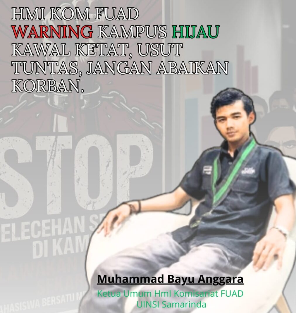 Merespons situasi tersebut, Ketua Umum HMI Komisariat FUAD UINSI Samarinda, Muhammad Bayu Anggara, mengeluarkan pernyataan resmi yang menegaskan sikap organisasi mahasiswa tersebut. Ia menyatakan bahwa kasus ini tidak boleh dianggap remeh dan harus ditindaklanjuti secara serius oleh pihak kampus.