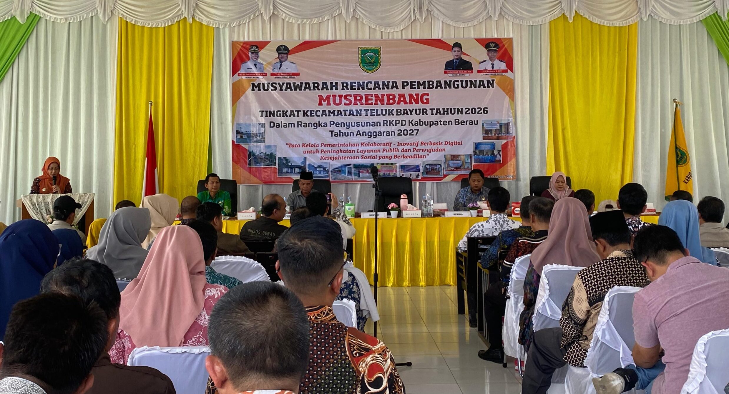 BERAU – Kecamatan Teluk Bayur menghimpun sebanyak 525 usulan program pembangunan dalam Musyawarah Perencanaan Pembangunan (Musrenbang) Kecamatan Tahun 2026 sebagai dasar penyusunan Rencana Kerja Pemerintah Daerah (RKPD) Kabupaten Berau Tahun 2027. Forum perencanaan tersebut digelar di Pendopo Kecamatan Teluk Bayur, Sabtu (7/2/2026), dan dipimpin langsung oleh Bupati Berau, Sri Juniarsih Mas.