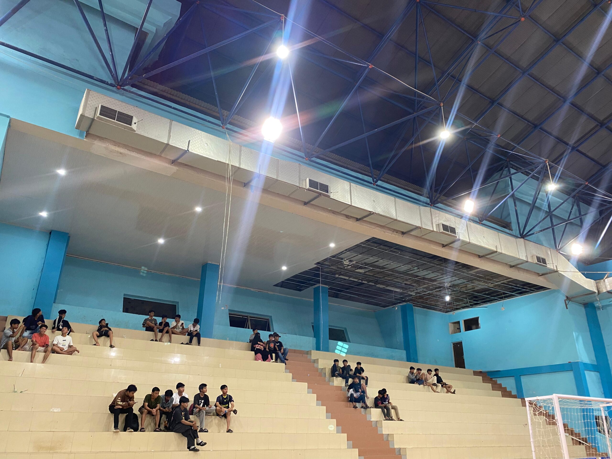 Meski sempat menimbulkan kekacauan, panitia tetap melanjutkan pertandingan futsal setelah kondisi dinilai aman. Namun hingga laga kembali berjalan, potongan plafon yang runtuh masih terlihat berserakan di sekitar tribun, menimbulkan kekhawatiran tersendiri bagi sebagian penonton.